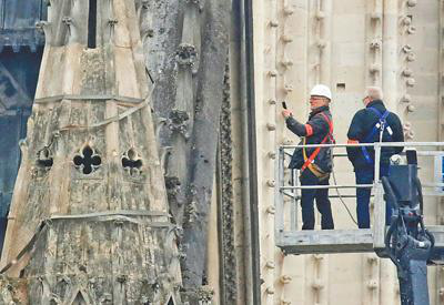 4月16日,一名工作人員為大火后的巴黎圣母院拍照。新華社發